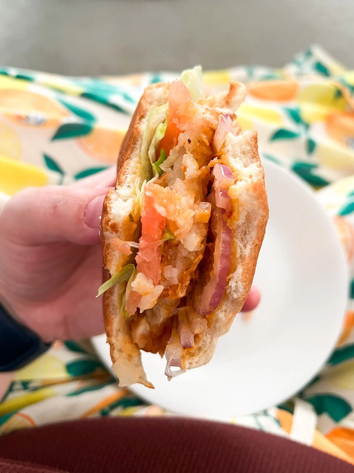 If you’ve been looking for an alternative to a Beyond Burger this is it. First of all it’s much cheaper only about $4 (though prices may vary). Secondly, it’s surprisingly light and delicious. And SPICY. I love spicy food but this kind of took me by surprise, so be prepared.
